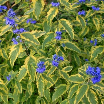 Цветение: цветет ярко-синими, медоносными цветками, длина которых не превышает 0,8 см, с конца лета до средины осени. Цветение обильное, на однолетних побегах, в уголках листочков.
