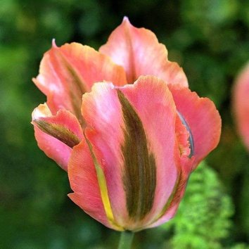Цвет оранжево-красные лепестки имеют широкую ярко-зеленой штриховку по всей спинке
