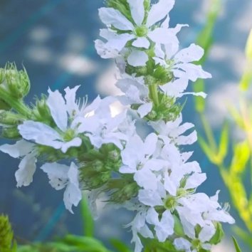 Цветение: белые колосовидные соцветия состоят из мутовок мелких, колокольчатых цветков, растущих из пазух листьев. Цветение длится до октября.