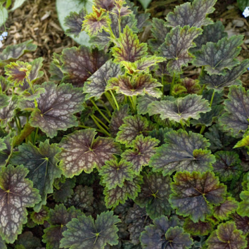 Листья: коричнево-серебристые с широкой зелёной каймой. Края листьев - зубчатые.