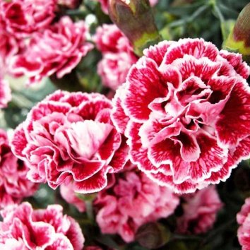 Цветение: соцветия крупные, махровые. Лепестки красные с белой каймой, гофрированные по краям. Бутоны могут похвастаться ярким ароматом, который привлекает различных насекомых. Цветение обильное и продолжительное с июня по август. Отцветшие соцветия рекомендуется удалять.
