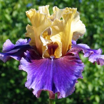 Цветение: стандарты цвета тёмно-жёлтого лимона, у основания цвет ещё более тёмного оттенка. Фолы бархатистые, фиолетовые, светлеющие к краям. По краю кромка серо-розового цвета, до середины фолов – сплошной красно-коричневый цвет. Бородки золотисто-лавандовые.