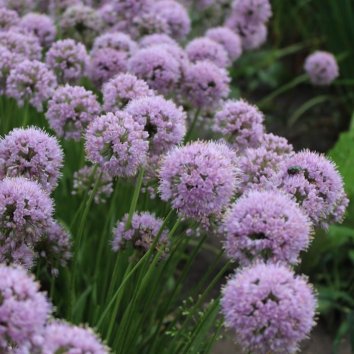 Цветение: цветки душистые, лавандово-фиолетовые, в круглых соцветиях до 8 см в диаметре.