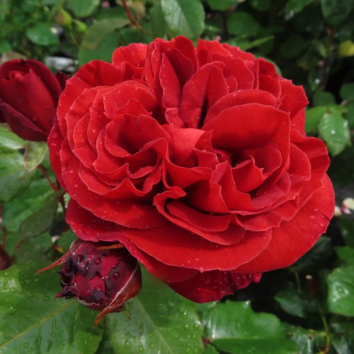 Цветки: насыщенные бархатисто-красные махровые цветки классической формы. Обладает стойким ароматом пряностей. Идеально подходит для срезки.