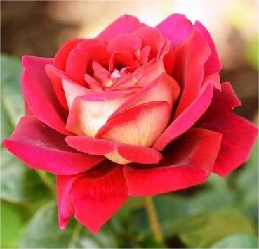 Цветки: насыщенно-розовые с желтой подложкой, крупные, густомахровые.